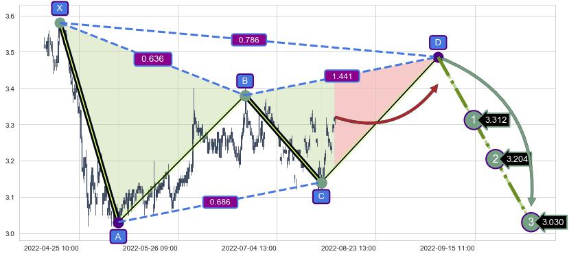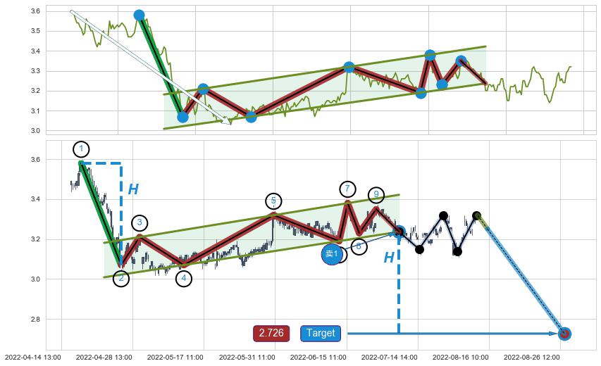 ➣ D点拟合预测价格3.486,距离最后交易收盘价格3.320相差 +5.00%