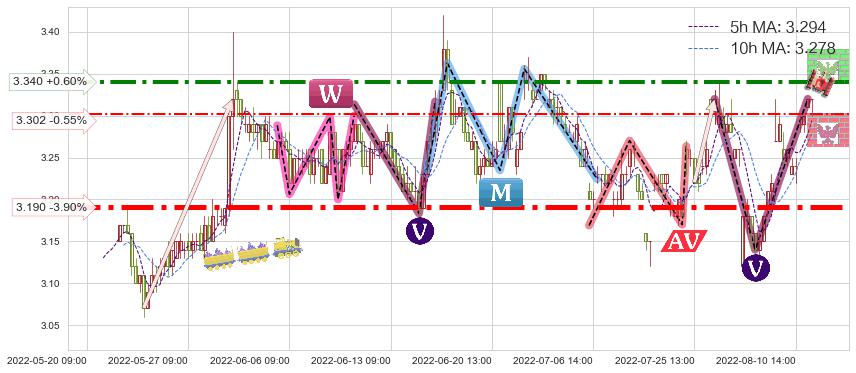 ➣ 【已确认突破】最后价格:3.320与最小【反转】第一目标价格→(08-18:13: 2.967 )相较: 下跌空间【较大】
