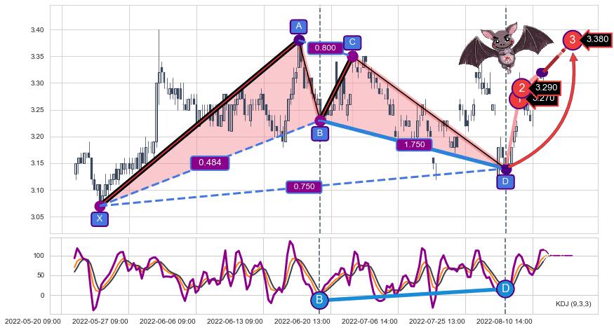 ➣ 已完成【蝙蝠】形态起点X: 05-24:14, 终点D: 08-03:14, 共152交易小时