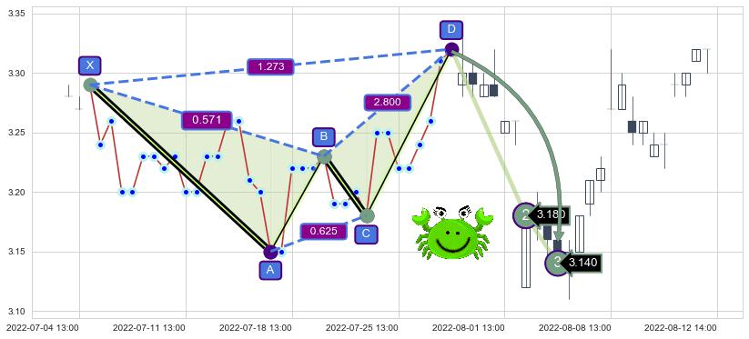 ➣ 已完成【螃蟹】形态起点X: 07-04:14, 终点D: 07-27:14, 共35交易小时