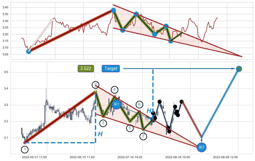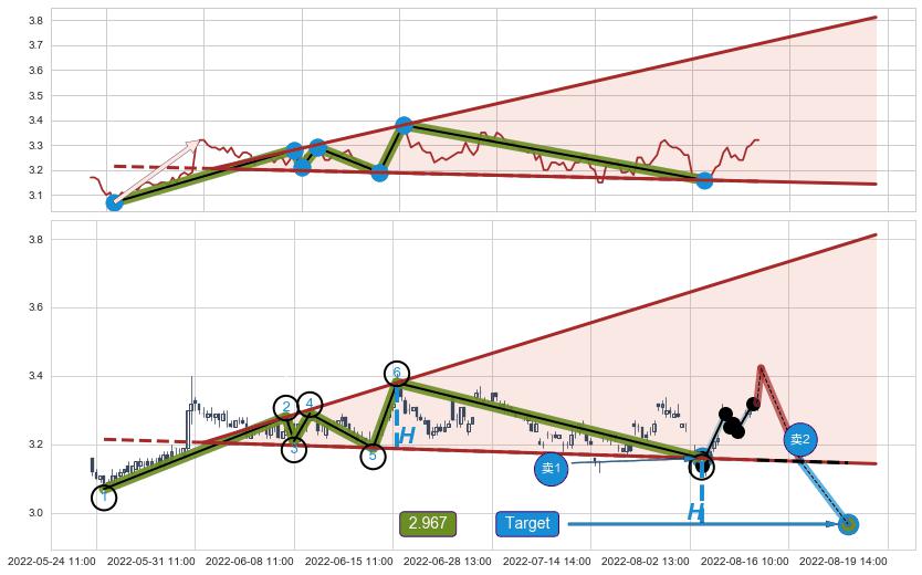➣ 08-08:14到达第❷价格目标位置3.290