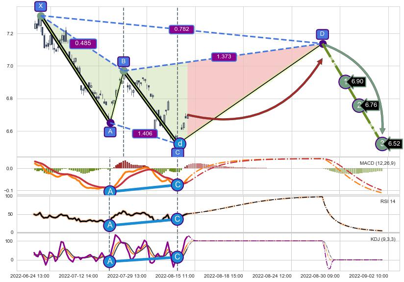 ➣ D点拟合预测价格7.14,距离最后交易收盘价格6.70相差 +6.53%