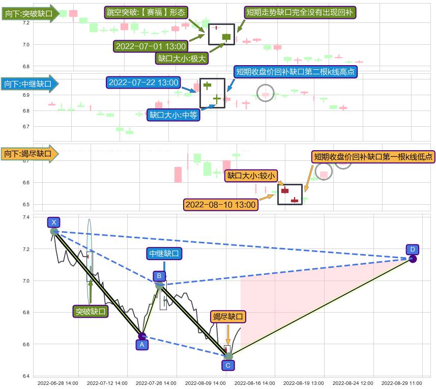 ➢ 2022-08-10 13:00形成:向下跳空【竭尽】缺口