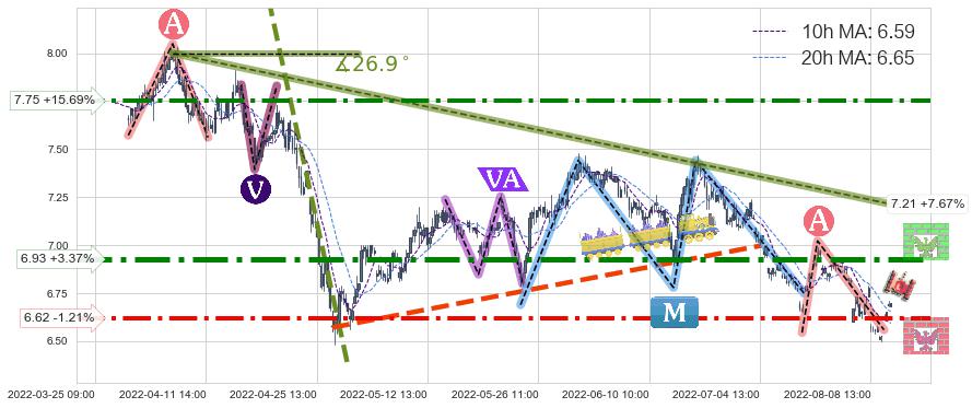 ➣ 【多空实力根本性转变→大方向抉择→空方占优】已在08-08:13突破【支撑】颈线 6.62