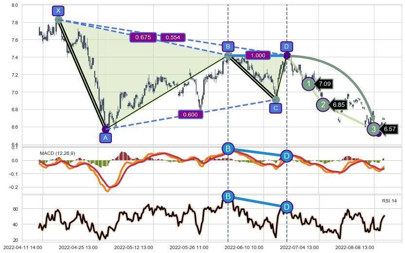 ➢ 谐波价格D点比B点高 ⤴,【MACD】指标D点比B点低 ⤵️