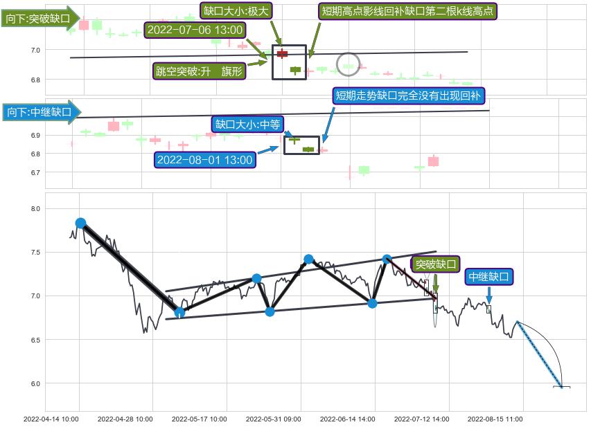 ➢ 2022-08-01 13:00形成:向下跳空【中继】缺口