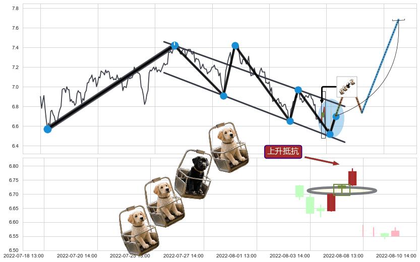 ♘ 阻力价格位6.93,可信任强度85.48%,距离最后交易2022-08-12 14:00形成的收盘价格6.70相差 +3.37%