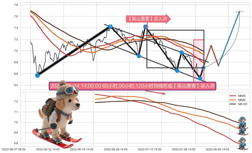 | 7 🅚:【高山滑雪】买入点 ➕ 🌊:波浪理论猜想下跌浪5已形成,猜想后续形成abc反弹上涨(均值回复) ☞ 看多信号 ⇥ 【均线】交织【图形】⇥ 综合量化分数: 52 | > |