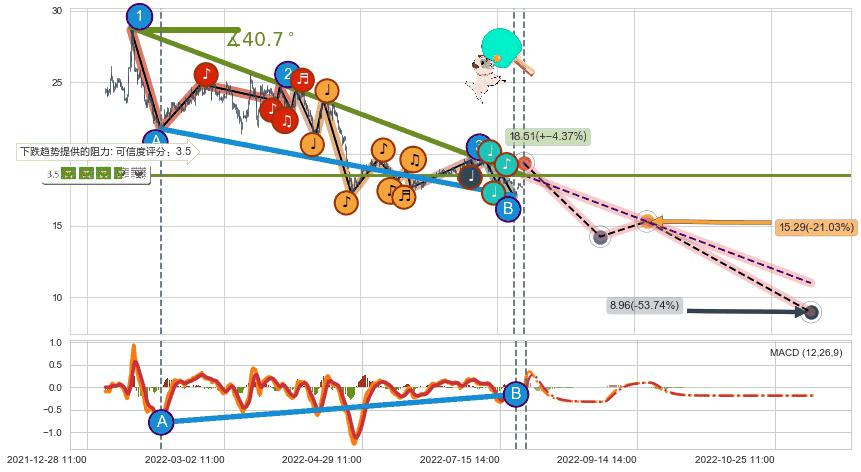 ➣ 预测:2022-09-19 12:00,【试探阻力】稳定目前下跌趋势的前提下,预测价格:15.29