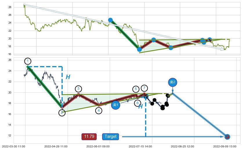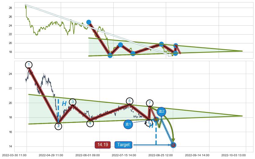 ➢ 最小中继整理跌幅→𝐇: 7.52 (𝐇楔型旗杆的长度:楔型起点→顶点)