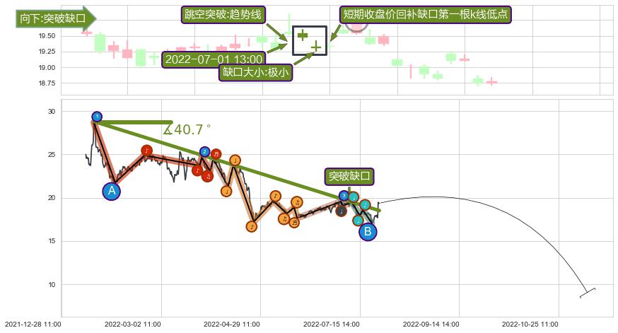 从2022-01-17 11:00至2022-08-10 14:00,共包含572个小时,阶段股价下跌-43.76%,阶段股价变动位移路程比: 1 : 11,下跌趋势角度: 40.7