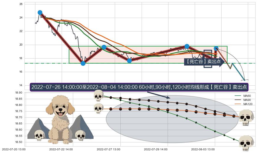 🦴 长线均值回复组合短线趋势跟踪[强阻力信号]2022-01-17 11:00-2022-08-10 14:00下跌趋势依然成立(下跌趋势跟踪依然存在),短线价格略微上行反弹(均值回复猜想),即将接近下跌趋势提供的未破位阻力价格:18.51。