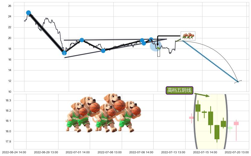♘ 在最后的下跌阶段2022-01-17 11:00至2022-08-10 14:00,存在 破位边缘的阻力位 ,阻力价格18.51,可信任强度76.74%,其距离最后价格19.36相差 -4.37%