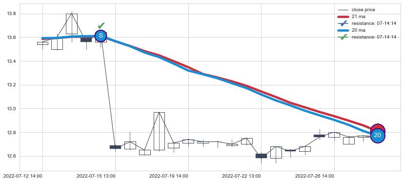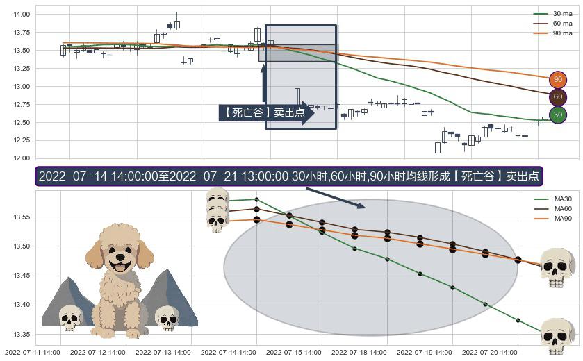 ⚀ 2022-07-15 13:00:00-小时至2022-07-21 13:00:00-小时显现 30小时-60小时-90小时均线 【死亡谷】卖出点 看空信号,后市看跌,卖出