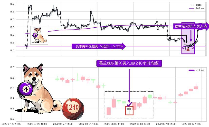 ⚀ 2022-08-04 13:00:00-小时显现 葛兰威尔均线 240小时均线 第④买入点 下降趋势均值回复的短线反弹信号,后市看涨,买进信号