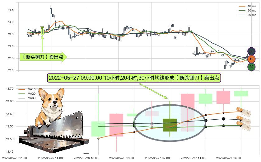 ⚀ 2022-05-27 09:00:00小时显现 10小时-20小时-30小时均线 【断头铡刀】卖出点 看空信号,后市看跌,卖出