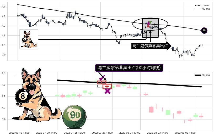⚁ 90小时均线 第⑧卖出点 属于 均线服从 信号,属于趋势运行的【常态】即信号期望为下降趋势的中继