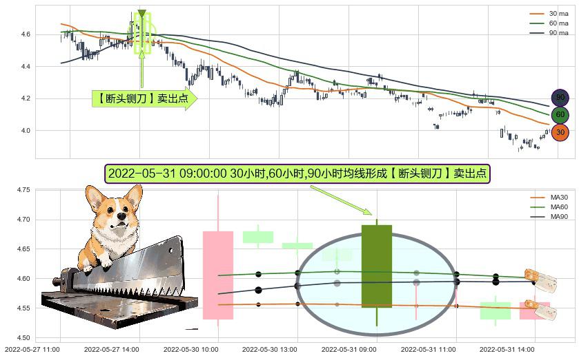 ⚀ 2022-05-31 09:00:00小时显现 30小时-60小时-90小时均线 【断头铡刀】卖出点 看空信号,后市看跌,卖出