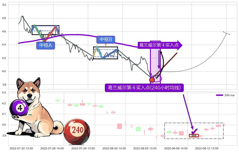 ➢ 收盘价(08-10:13: 3.890 )→再次回踩→第一根k线高点(08-05:14: 3.910 )