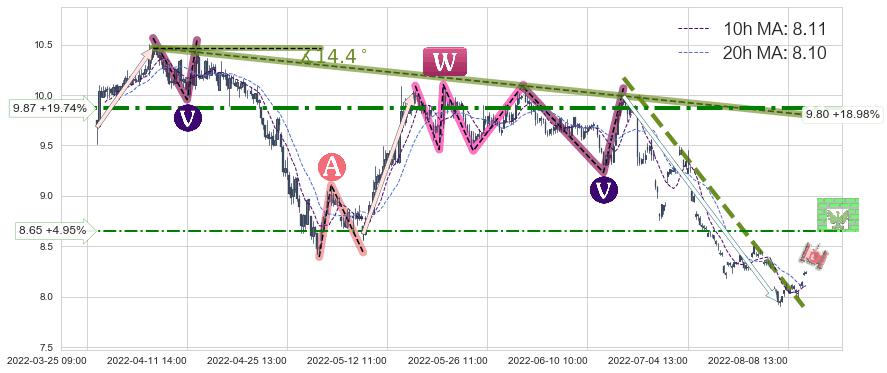 ♞ 10小时均线:8.11,20小时均线:8.10→ 快线>慢线