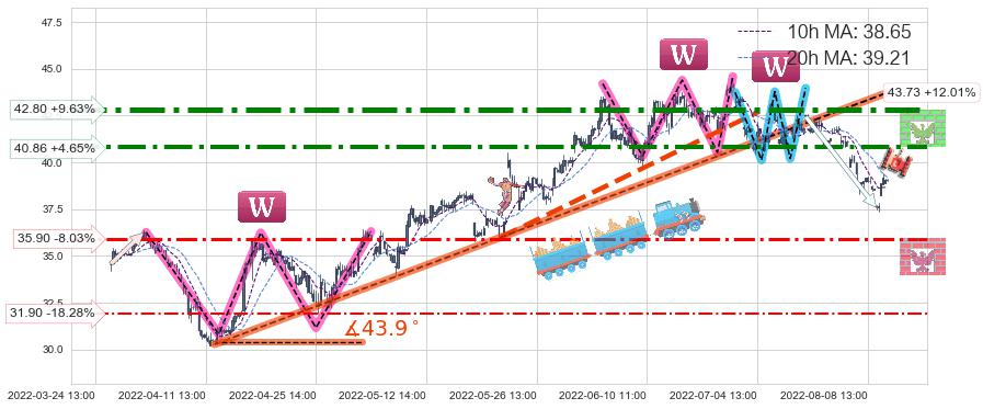 ♘ 阻力价格位40.86,可信任强度76.36%,距离最后交易2022-08-12 14:00形成的收盘价格39.04相差 +4.65%