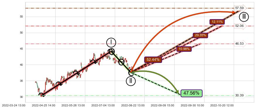 ➢ 大趋势走坏(跌破5浪起点位置)概率47.56%