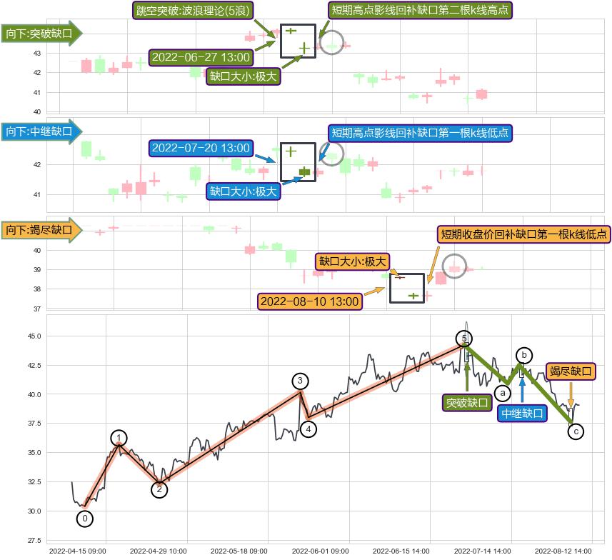 ➢ 2022-08-10 13:00形成:向下跳空【竭尽】缺口