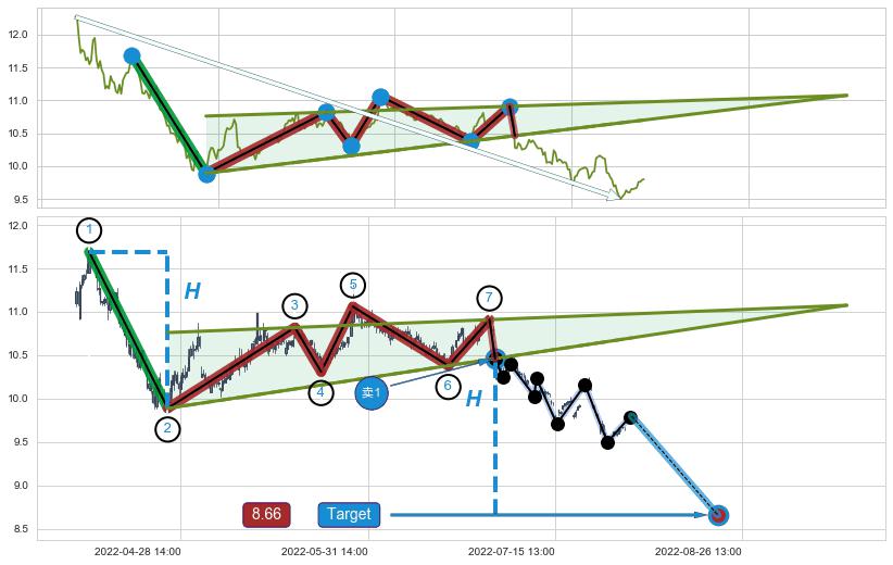 ➣ D点拟合预测价格11.67,距离最后交易收盘价格9.80相差 +19.04%