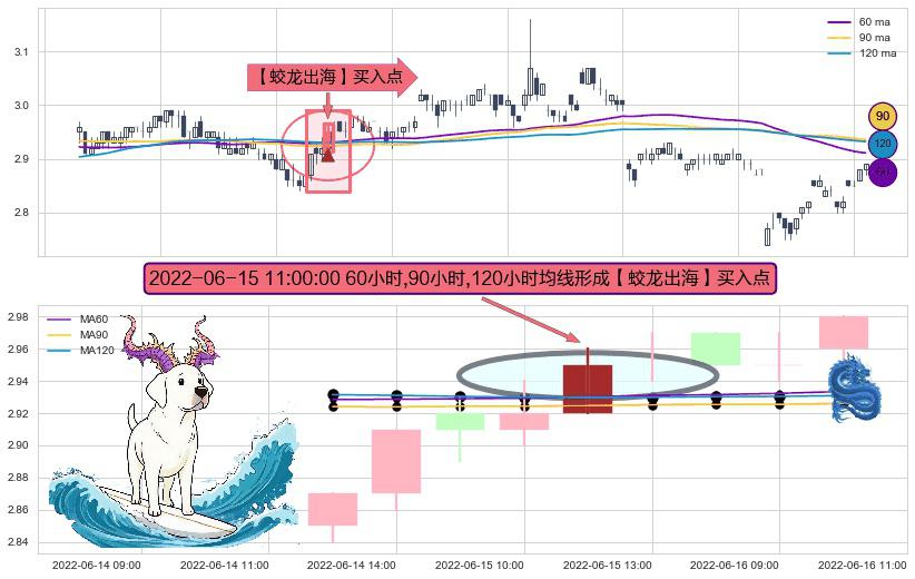 ⚀ 2022-06-15 11:00:00小时显现 60小时-90小时-120小时均线 【蛟龙出海】买入点 看多信号,后市看涨,买入