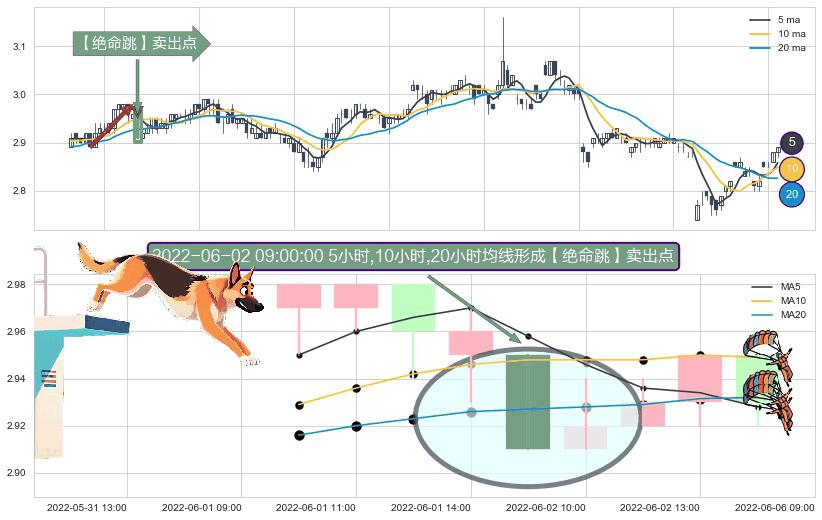 ⚀ 2022-06-02 09:00:00小时显现 5小时-10小时-20小时均线 【绝命跳】卖出点 看空信号,后市看跌,卖出