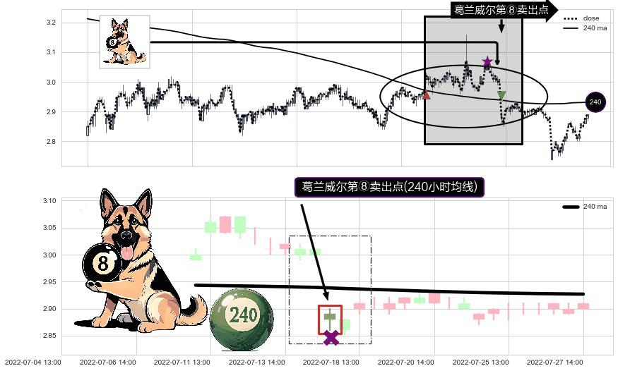 ⚁ 240小时均线 第⑧卖出点 属于 均线服从 信号,属于趋势运行的【常态】即信号期望为下降趋势的中继