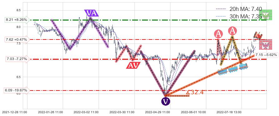 ♞ 20小时均线:7.40,30小时均线:7.35→ 快线>慢线