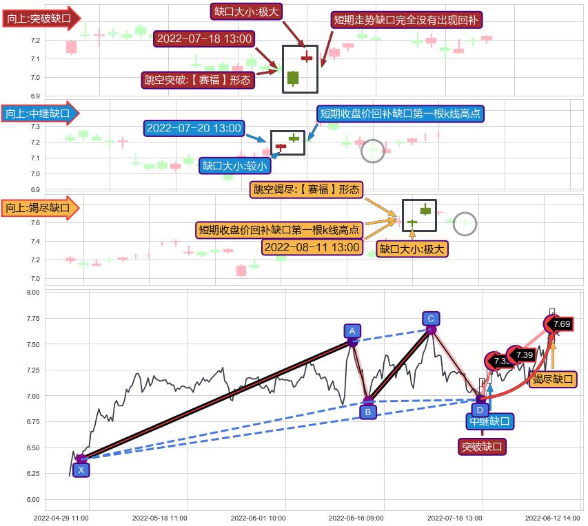 ➢ 2022-08-11 13:00形成:向上跳空【竭尽】缺口