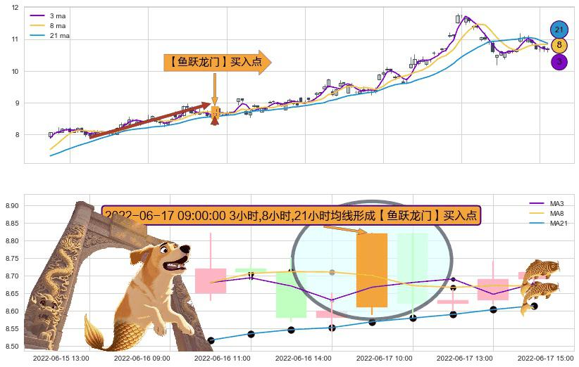 ⚀ 2022-06-17 09:00:00小时显现 3小时-8小时-21小时均线 【鱼跃龙门】买入点 看多信号,后市看涨,买入