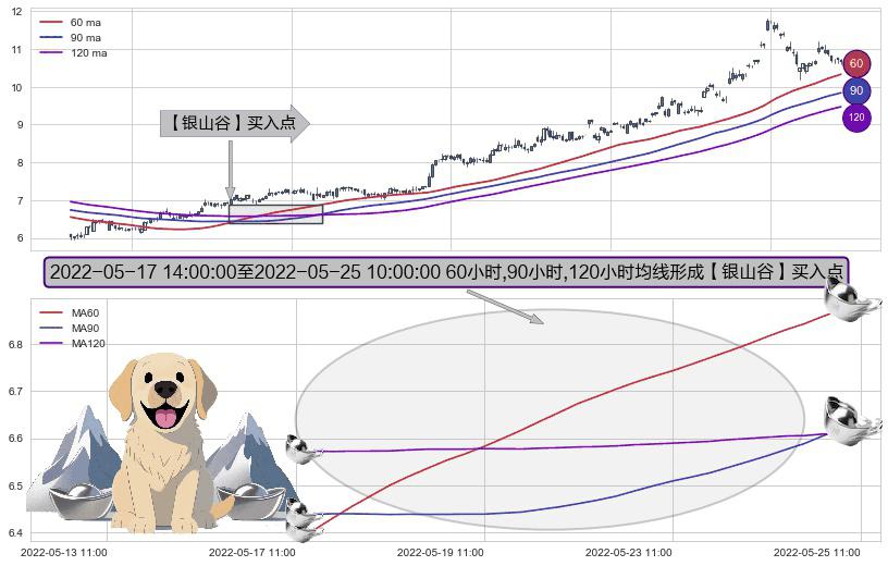 ⚀ 2022-05-18 09:00:00-小时至2022-05-25 10:00:00-小时显现 60小时-90小时-120小时均线 【银山谷】买入点 看多信号,后市看涨,买入