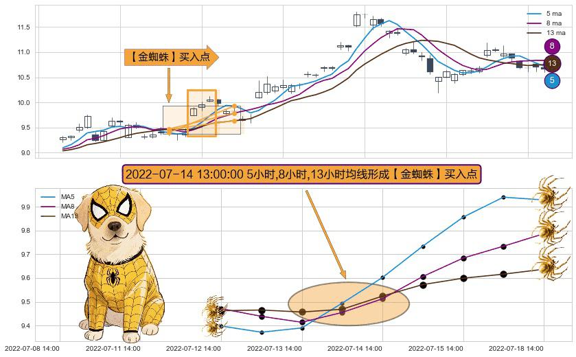 ⚀ 2022-07-14 13:00:00小时显现 5小时-8小时-13小时均线 【金蜘蛛】买入点 看多信号,后市看涨,买入