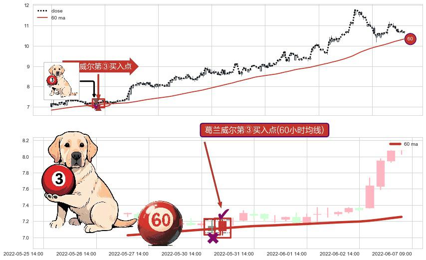 ⚀ 2022-05-31 10:00:00-小时显现 葛兰威尔均线 60小时均线 第③买入点 上升趋势的中继信号,后市看涨,买进信号
