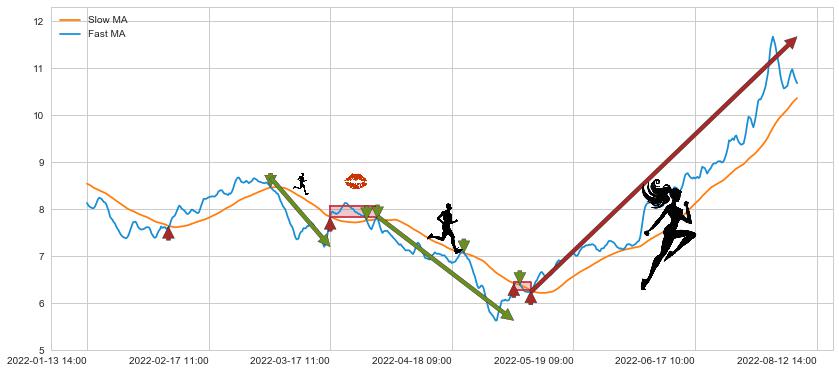 05-10 09:00至08-12 14:00 慢线与快线呈多头排列, 慢线与快线接触少,无缠绕