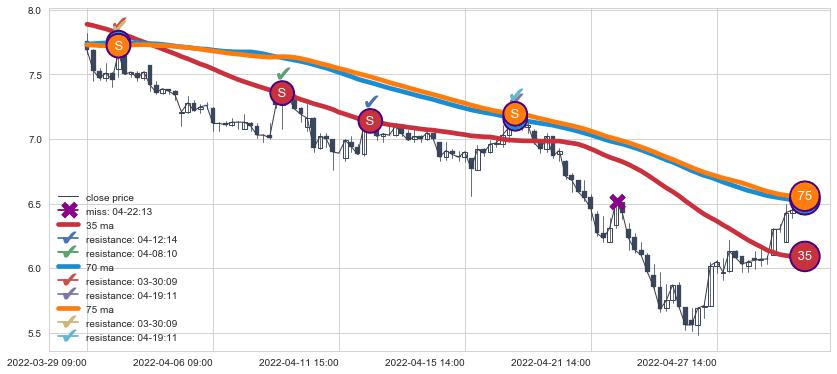 ⚃ 2022-07-28 13:00:00-小时 第⑤卖出点 距离均线【近】距离,均线主动修复向下牵引作用【强】