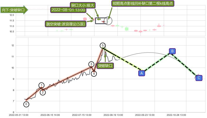 ➢ 2022-08-01 13:00形成:向下跳空【突破】缺口