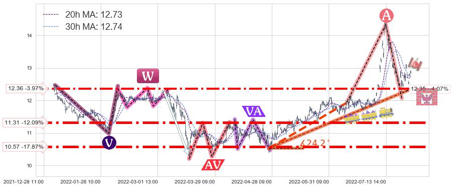 ♞ 20小时均线:12.73,30小时均线:12.74→ 快线<慢线