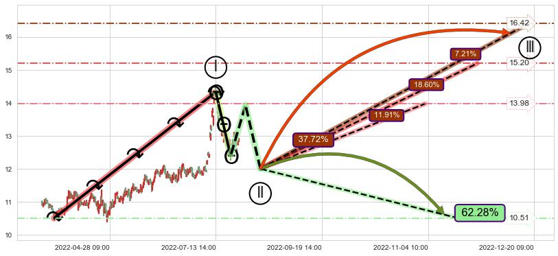 ♘ 支撑价格位10.57,可信任强度85.95%,距离最后交易2022-08-12 14:00形成的收盘价格12.87相差 -17.87%