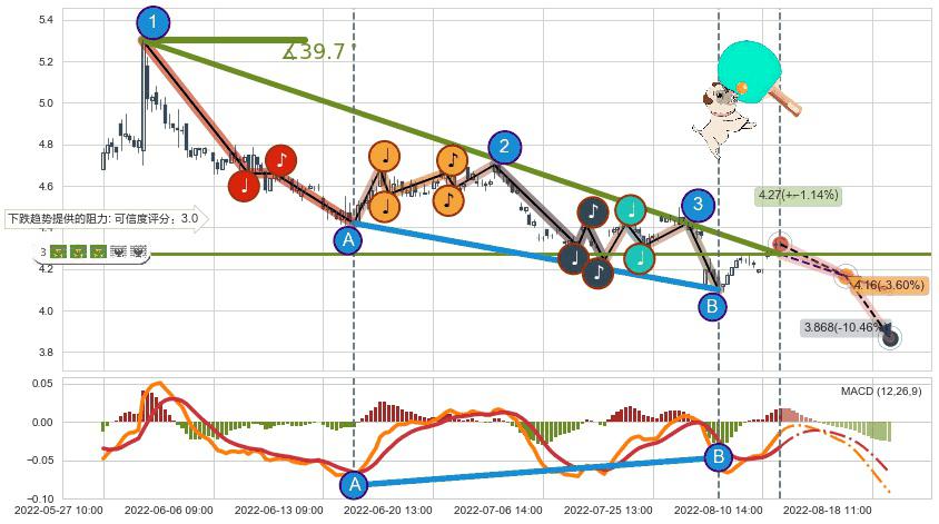 ➢ 预测:2022-08-17 11:00,【试探阻力】稳定目前下跌趋势的前提下,预测价格:4.16
