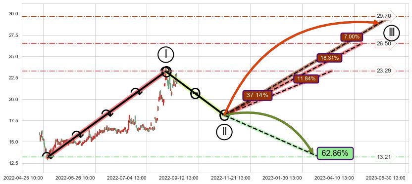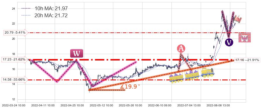 ♘ 支撑价格位17.23,可信任强度87.73%,距离最后交易2022-08-12 14:00形成的收盘价格21.98相差 -21.62%