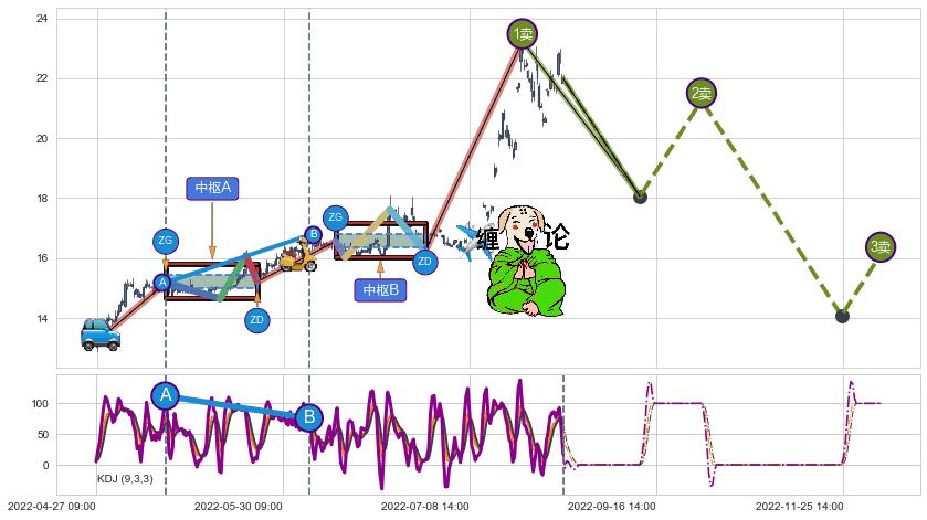 从2022-06-13 14:00至2022-06-22 14:00,共包含27个小时,阶段股价下跌-1.98%,阶段股价变动位移路程比: 1 : 15