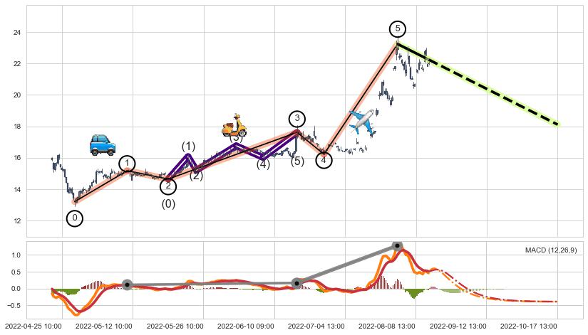 | 3 🅚:升势停顿 ➕ 🌊:波浪理论猜想上涨浪5已形成,猜想后续形成回调abc下跌(均值回复) ☞ 看空信号 ⇥ 【🅚线】交织【图形】⇥ 综合量化分数: 49 | > |