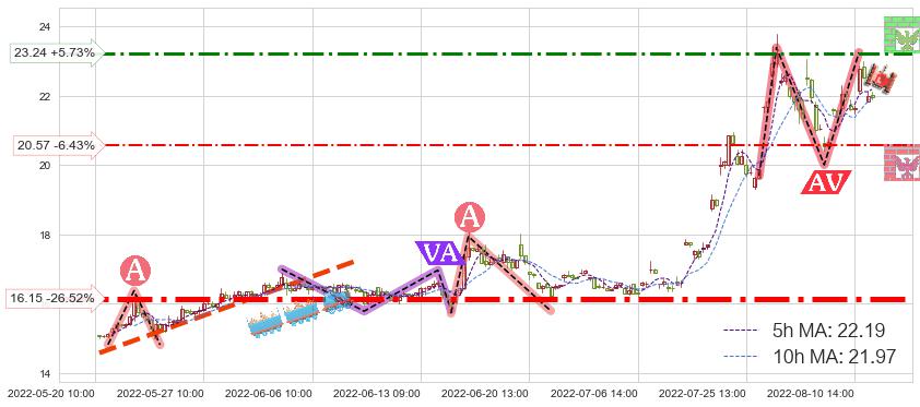 ♘ 阻力价格位23.24,可信任强度55.59%,距离最后交易2022-08-12 14:00形成的收盘价格21.98相差 +5.73%