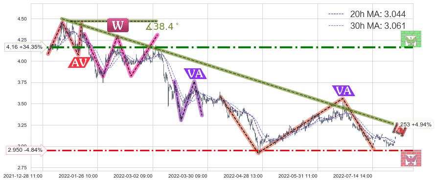 ♘ 支撑价格位2.950,可信任强度61.08%,距离最后交易2022-08-12 14:00形成的收盘价格3.100相差 -4.84%