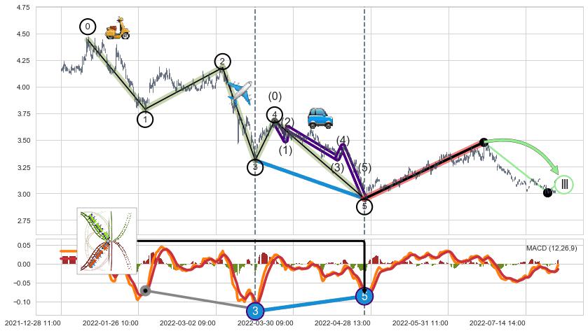 ➢ 第五驱动浪【动能】:🚙 55.87%, 是3个下跌浪中【中等】动能
