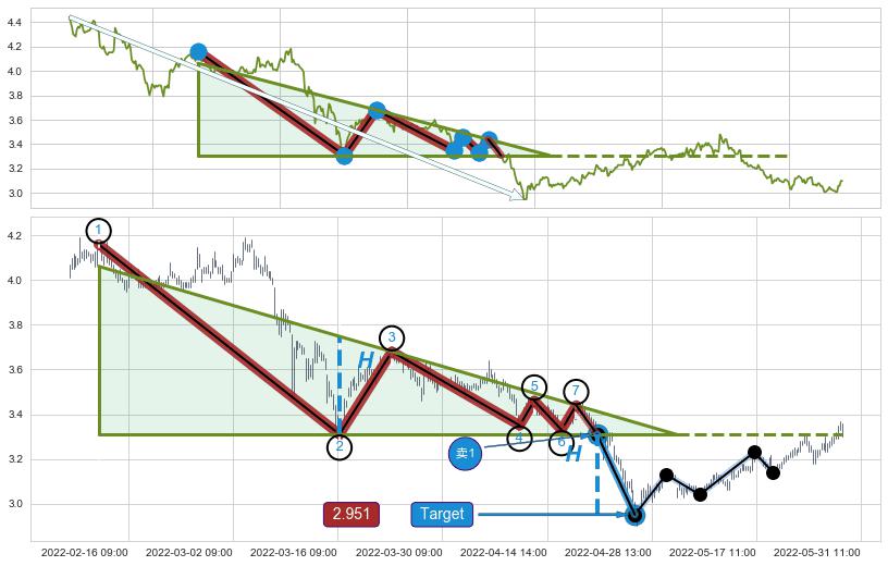 ➢ 最小中继整理跌幅→𝐇: 0.7800 (𝐇楔型旗杆的长度:楔型起点→顶点)